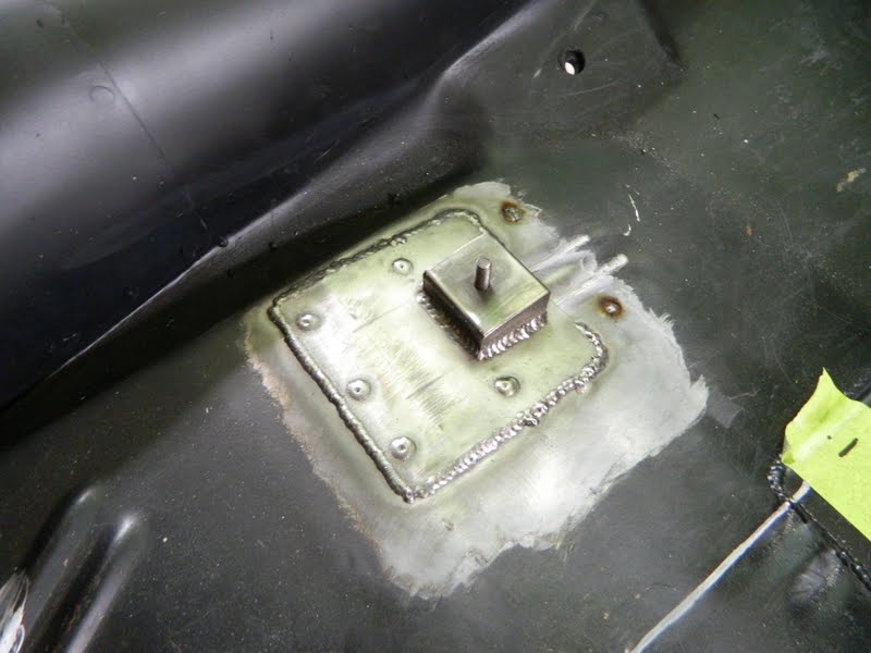 I attached the blocks to a 12 ga. plate so that when I welded them in, I could pick up the floor reinforcements.