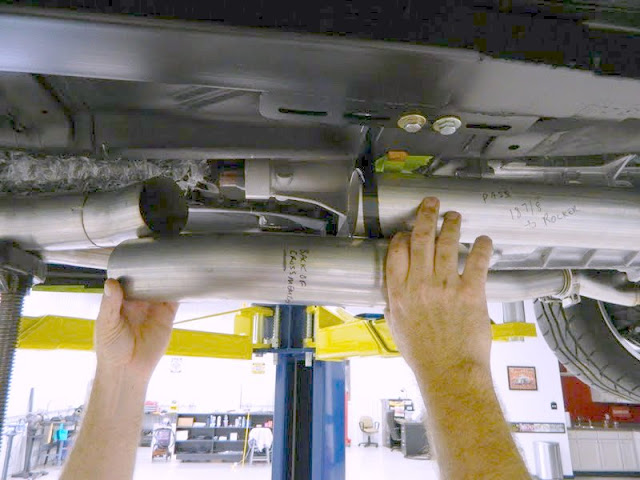 We kept a log and I had 66 hours in the exhaust. There are 23 separate pieces (including the x-pipe). Before the final install I will brush all of the welds. I want to thank Terry at ABT welding for his patience and welding skills. It is awesome to watch a skilled welder perform his craft. This guy welds as easily as most of us walk! I learned alot. (I can TIG but no where near good enough for this project...yes I am envious of his skills!). All in all I am really happy with the final product. It is a shame that it is on the bottom of the car! I won't be shy about telling anyone to take a peek underneath!